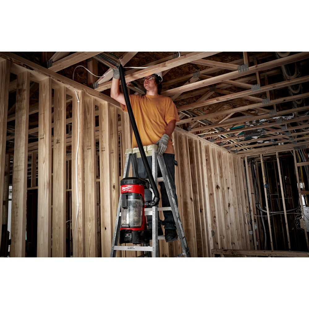 The M18™ FUEL™ 3-in-1 Backpack Vacuum brings unmatched performance, portability, and versatility to the jobsite cleanup category. A POWERSTATE™ Brushless Motor and cyclonic technology delivers up to 2X more suction than the competition, allowing users to clean up drywall dust, concrete dust, wood/metal shavings and other common jobsite debris quicker and more efficiently. A quick release removable harness with an integrated canister hook allows users to wear, hang, and carry the product for ultimate cleaning versatility on any jobsite. At only 76 dB(A), the vacuum is up to 3X quieter than a traditional jobsite vacuum, allowing for quiet operation in occupied spaces. As a part of the M18 System of tools, it is powered by REDLITHIUM™ battery packs, which deliver up to 25 minutes of run time on a HIGH DEMAND™ 9.0 Battery Pack in high mode, and over 40+ minutes of run time in low mode. For added convenience, the 0885-20 empties debris at the click of button, reducing downtime when the canister is full and allowing users to get back to the task at hand. Whether you are doing spot, area, or final cleanups, the M18™ FUEL™ 3-in-1 Backpack Vacuum can go anywhere on any jobsite to complete countless cleanup tasks.