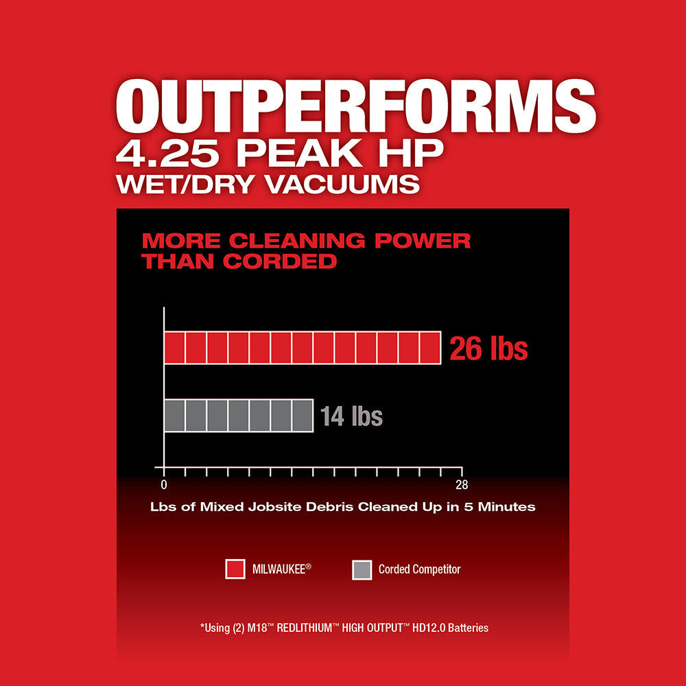 • 12 Gal Dual-Battery Wet/Dry Vac Outperforms 4.25 Peak HP Vacuums