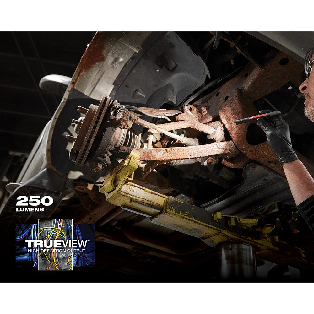 FASTER, MORE ACCURATE INSPECTIONS. The Milwaukee® Rechargeable 250L Penlight w/ Laser delivers 250 Lumens of TRUEVIEW HIGH DEFINITION OUTPUT and an integrated laser pointer to ensure faster inspections and accurate communication on the jobsite. A built in protective rubber bite zone allows users to quickly direct light while performing two-handed tasks. With 2 output modes, get the optimal light or run-time up-to 8 hours for any task. Stay ready from job-to-job with usb charging and an on-board battery indicator. The removable metal clip offers secure attachment to shirt or pant pocket for reliable storage. This penlight is built to survive the toughest jobsite conditions with an IP54 Water and Dust Resistant Rating and withstands impacts up to 2M.The Milwaukee® Rechargeable 250L Penlight w/ Lasers built-in battery gives users high performance and rechargeable capabilities where compact size is critical. The Milwaukee® Rechargeable 250L Penlight w/ Laser is covered by a 2-year warranty.