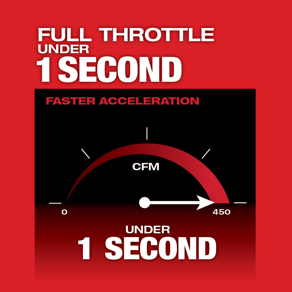 The MILWAUKEE® M18 FUEL™ Blower has the power to clear from 15 ft, gets to full throttle in under 1 second, and is up to 4 lbs lighter than competitors. Designed to meet landscape maintenance professional needs, the POWERSTATE™ Brushless Motor and M18™ REDLITHIUM™ HIGH OUTPUT™ XC8.0 Battery deliver 450 CFM and 120 MPH output. The blower features a variable speed trigger and high/low speed settings for increased control. The high setting is for the most demanding applications and low is optimized for clearing debris from flower beds without moving mulch. The lock on button allows the blower to be locked on to full throttle, so the operating hand can be relaxed reducing fatigue. The M18 FUEL™ Blower is fully compatible with 200+ solutions on the M18™ system.