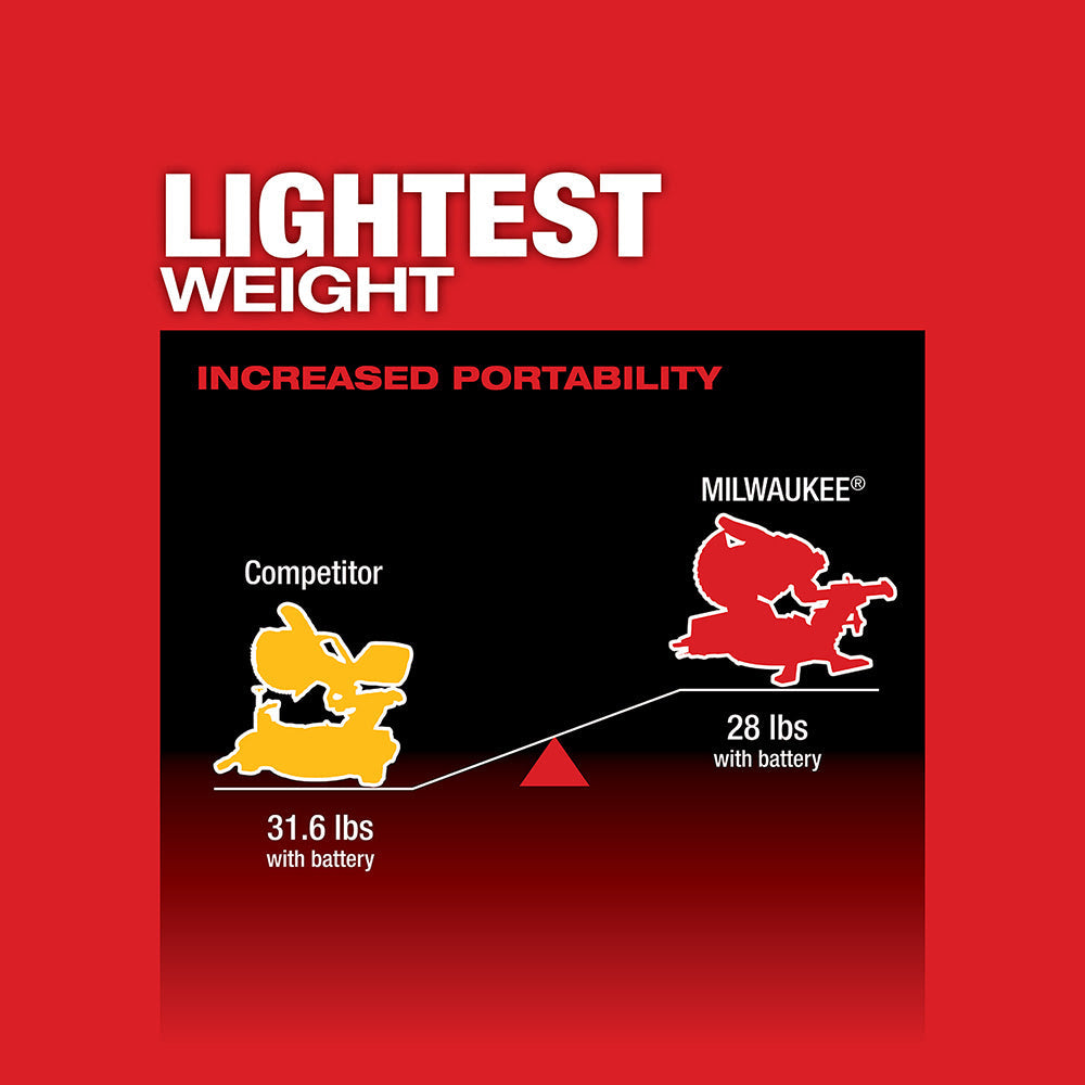The M18 FUEL 7-1/4” Dual Bevel Sliding Compound Miter Saw was designed for the demand needs of the professional carpenter and remodeler. Designed to increase productivity and efficiency on the jobsite, the 2733 combines the best in accuracy, portability and performance. Weighing in at only 28 lbs with battery, the 2733 is the Lightest Weight saw in its class. Dual bevel functionality provides users the most efficient and productive way make a variety of different cuts without flipping or turning the work piece. The combination of the POWERSTATE brushless motor and M18 REDLITHIUM XC5.0 battery(more...)