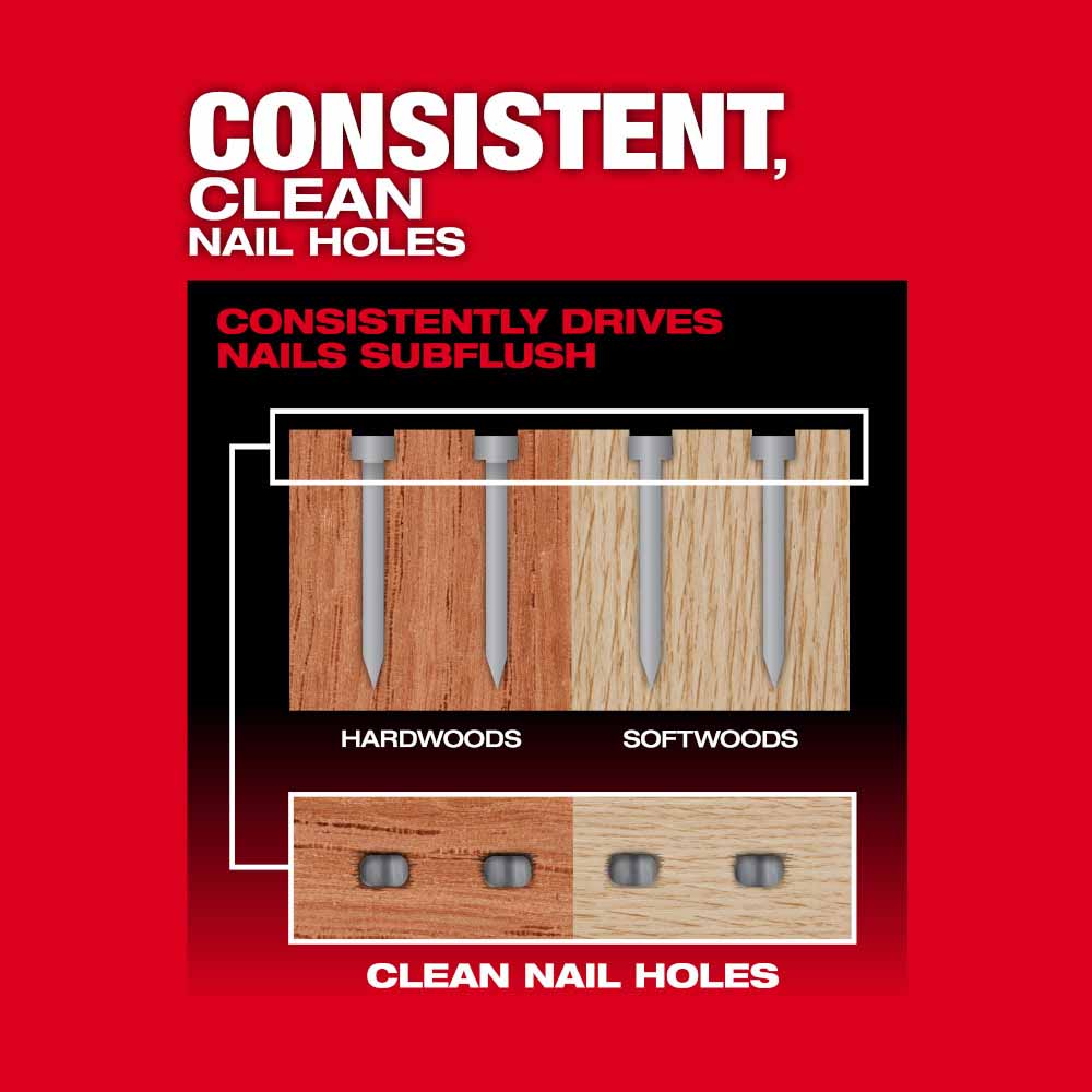 The MILWAUKEE® M18 FUEL™ 18 Gauge Brad Nailer Kit makes clean, consistent nail holes, is compact in size with zero ramp-up time.