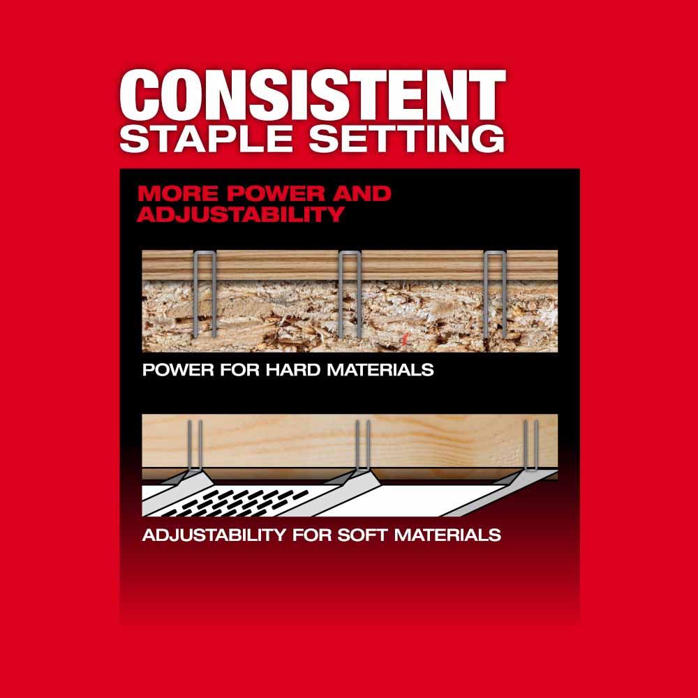 The M18 FUEL™ 18ga ¼” Narrow Crown Stapler delivers peak productivity on your job site, providing you with unmatched stapling performance without the hassle of a compressor and hose. We’ve leveraged our nitrogen air spring mechanism, to give the Narrow Crown Stapler the power to consistently sink staples to the proper depth in hard materials. This cordless stapler also has tool-free depth adjustment to drive staples in soft materials without blowing through. You can choose from sequential and contact actuation firing modes to meet your application’s needs. The combination of our(more...)
