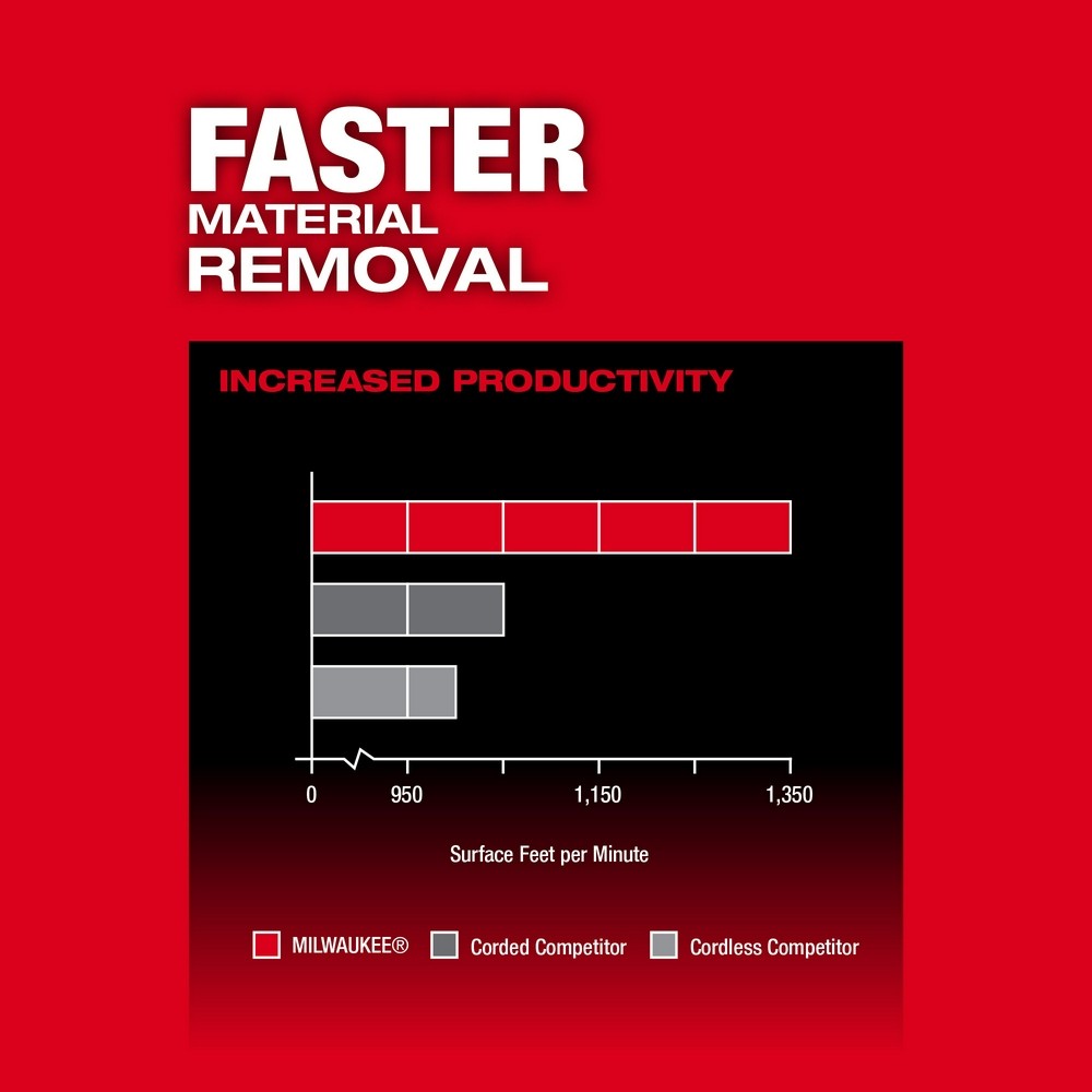 • Variable Speed Dial provides a belt speed range from 1350SFM to 750SFM (Surface Feet per Minute) for greater control of the removal rate in application.