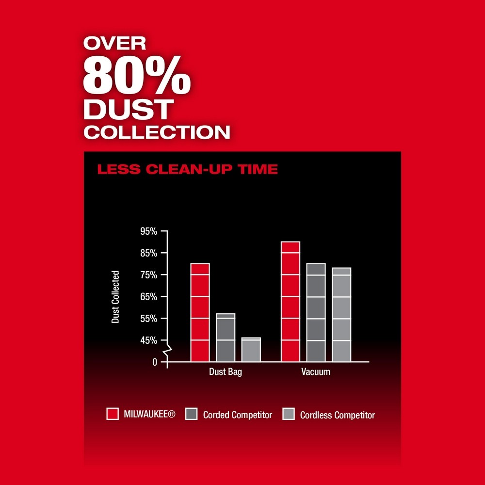 Designed for the professional carpenter, remodeler, and general contractor; the Milwaukee M18 FUEL 3” x 18” Belt Sander is optimized for power, portability, and productivity on the jobsite. The Milwaukee® M18 FUEL™ 3” x 18” Belt Sander generates the power and torque of an 8A corded belt sander, delivers faster material removal, and collects over 80% of dusts generated. The POWERSTATE™ Brushless Motor and REDLINK PLUS™ intelligence delivers best-in-class belt speed at 1350 SFM with less bog down under load for more aggressive material removal and ensures protection from overload, overheating, and over discharge. The M18 REDLITHIUM High Output HO6.0 battery (not included) provides all-day run-time and unprecedented power to tackle the toughest applications found on the jobsite. The variable speed dial offers adjustment from 1350SFM to 750SFM for increased control in a wider variety of materials. The dust collection system paired with our durable dust bag or universal hose adapter reduces clean up time through a cleaner work environment. The tool-free, adjustable pommel allows for flush sanding against the front of the sander and offers a more compact size for storage. This battery-powered belt sander also features automatic belt tracking, a tool-free belt tracking knob, dual-LED lights, a tool-free belt change lever, and a lock on button.