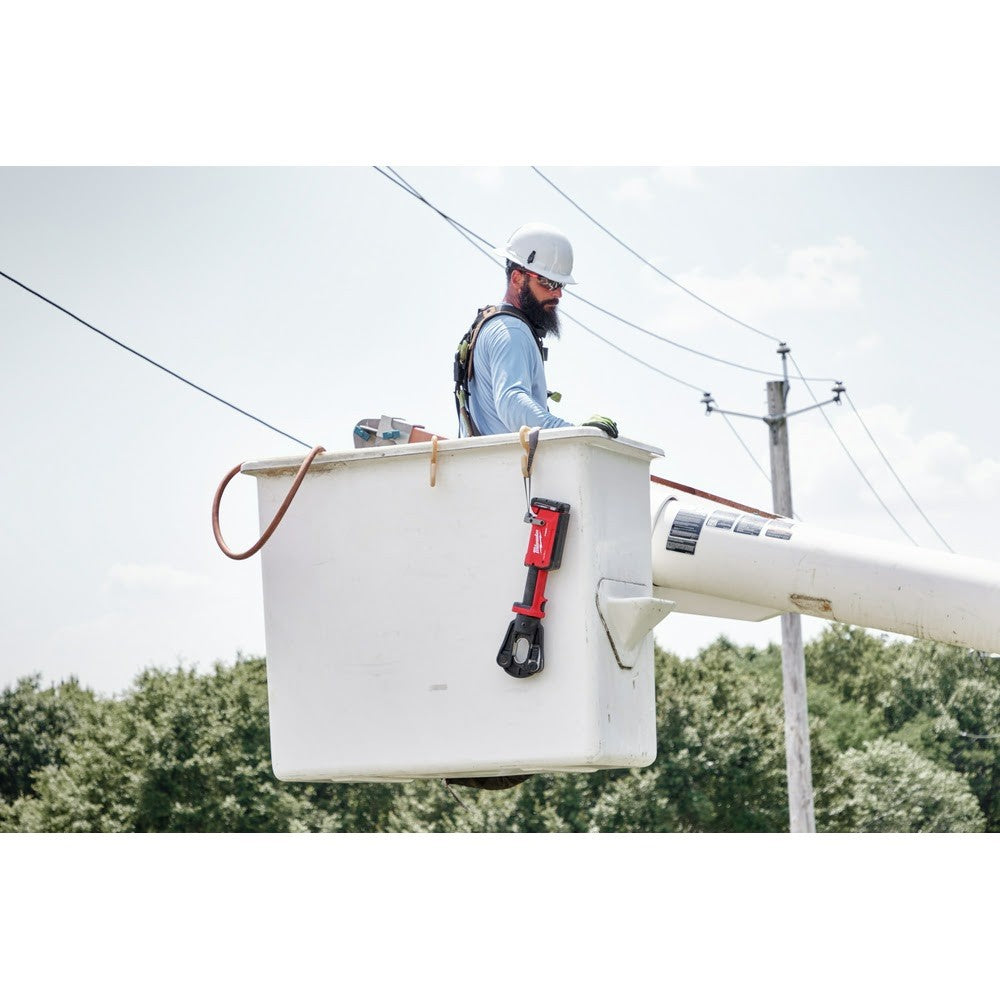The MILWAUKEE M18 FORCE LOGIC 12T Latched Linear Crimper is the fastest way to crimp. Equipped with fully enclosed high-speed hydraulics, a POWERSTATE Brushless Motor, REDLINK Electronics, and REDLITHIUM Batteries, the crimp tool provides the fastest crimp speed and unmatched reliability in the toughest conditions. The Milwaukee crimper is designed to allow one-handed use in multiple orientations. An enlarged trigger and electronic release button enable both left and right-handed users to easily activate the tool while wearing Class 3 gloves. The head of the crimper rotates 340° and the quick release and push-to-close style latch pin can be easily opened or secured with just one touch. Predictive Force Monitoring (PFM) constantly measures output force to deliver the fastest crimp speeds across all connector types and sizes and ensures full pressure is reached every time. A pre-crimp battery check confirms that the battery has enough charge to complete a full crimp. Full compatibility with all industry-standard U-dies allows you to use the dies already on your truck. The 12T Latched Linear Crimper creates UL Classified crimps per UL 486A-B on #8 - 750 MCM Copper and Dual Rated Anderson, Blackburn, Burndy, Ilsco, Panduit, Penn-Union, and Thomas & Betts color-coded lugs and splices when using MILWAUKEE EXACT 12T U-Dies. The crimper is integrated with MILWAUKEE ONE KEY Technology, giving the crimper the ability to store real-time crimp data.