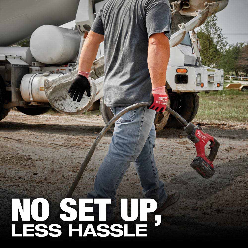The MILWAUKEE® M18 FUEL™ 4 ft Concrete Pencil Vibrator Kit generates up to 1.8 peak HP, with no setup and the ability to consolidate 20 yds³ of concrete per charge. The M18 FUEL™ 8 ft Concrete Pencil Vibrator generates 1.8 Peak HP, which is three times more powerful than competitive cordless pencil vibrators for concrete, all on the M18™ Cordless System. The POWERSTATE™ Brushless Motor delivers maximum sustained power and 12,500 VPM for optimal consolidation with a variable speed trigger. REDLINK PLUS™ Intelligence ensures unmatched levels of performance and protection. The included M18™ REDLITHIUM™ HIGH OUTPUT™ XC6.0 Battery delivers 50% more power while running 50% cooler than M18™ REDLITHIUM™ XC Batteries and are compatible with 200+ tools in the M18™ System.