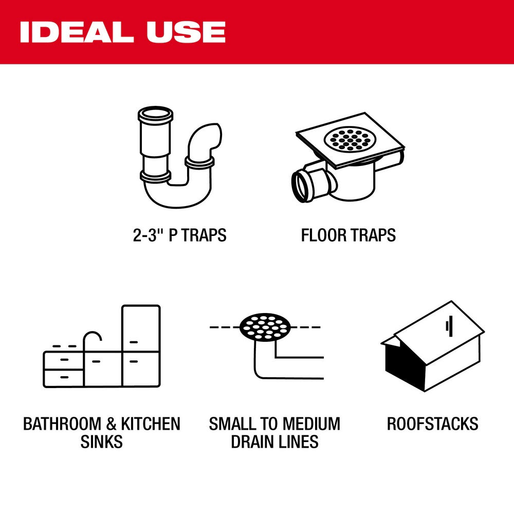 • 100’ Flexible Push Cable provides best maneuverability in tight bends and traps