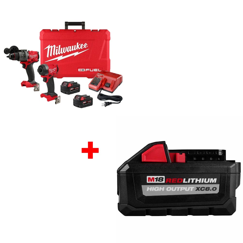 Milwaukee 3697-22 M18 FUEL 2-Tool Combo Kit w/ FREE 48-11-1880 M18 XC8.0 BATTERY