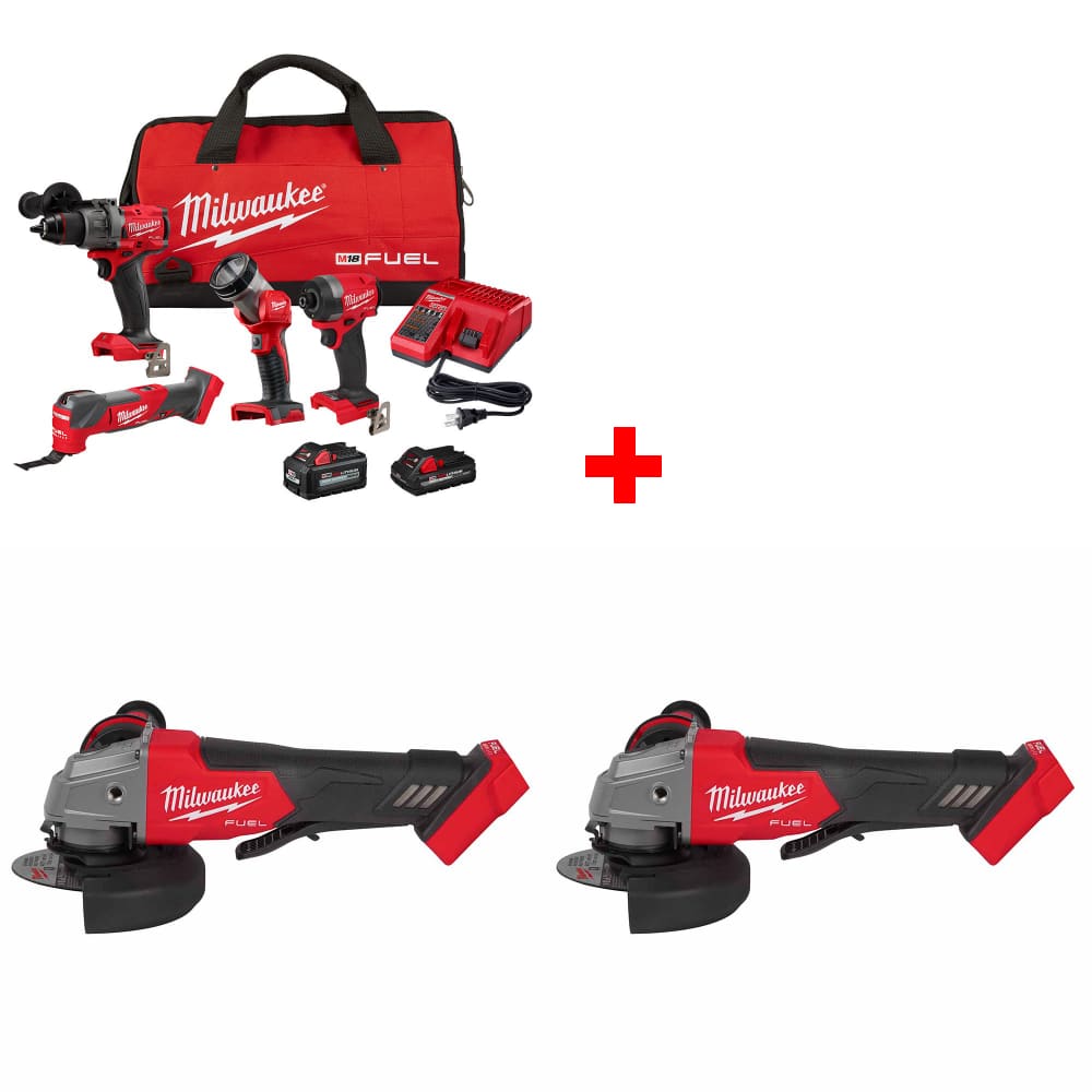 The Milwaukee M18 Cordless Lithium Ion 4-Tool Combo Kit includes the 1/2 in. a hammer drill, 1/4 in. impact driver, M18 FUEL Oscillating Multi-Tool and LED work light. M18 FUEL is fully compatible with the Milwaukee M18 18-Volt cordless system, featuring over 200 solutions. M18 FUEL features the most advanced cordless technology in the industry a POWERSTATE Brushless Motor, REDLINK PLUS Intelligence and REDLITHIUM Battery Technology, resulting in longer motor life, longer run time and more power. The M18 REDLITHIUM HIGH OUTPUT XC6.0 Battery Pack provides 50% more power and runs 50% cooler versus M18 REDLITHIUM XC battery packs. The Milwaukee 2719-20 M18 FUEL HACKZALL is the fastest cutting and most powerful 1-handed design reciprocating saw. The Milwaukee M18 FUEL Compact Router combines power, speed and accurate depth adjustments to deliver clean accurate cuts in a variety of materials and applications.