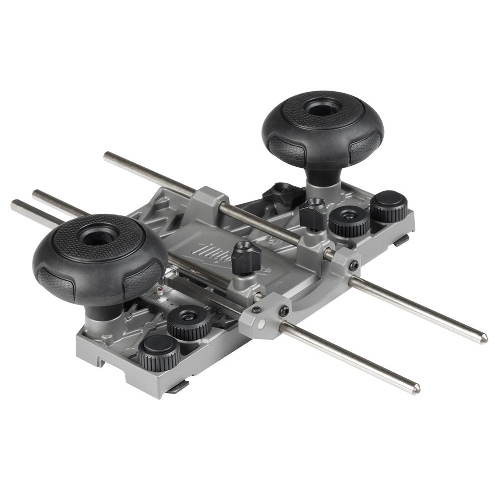 The MILWAUKEE Router Guide Rail Adapter delivers portable precision and enhanced versatility for the Milwaukee M18 FUEL Compact Trim Router (2723-20) and the M18 FUEL 1/2” Router (2838-20). The guide rail adapter is compatible with Milwaukee guide rails and allows for laser-straight cuts on the jobsite or in the shop. The durable aluminum construction, cam lock system, and anti-tilt feet deliver smooth, consistent passes across the guide rails. The adapter also features an adjustable depth of 2”, a depth scale with markings in inches and millimeters, and included gauge block that increases accuracy and reduces set-up time.