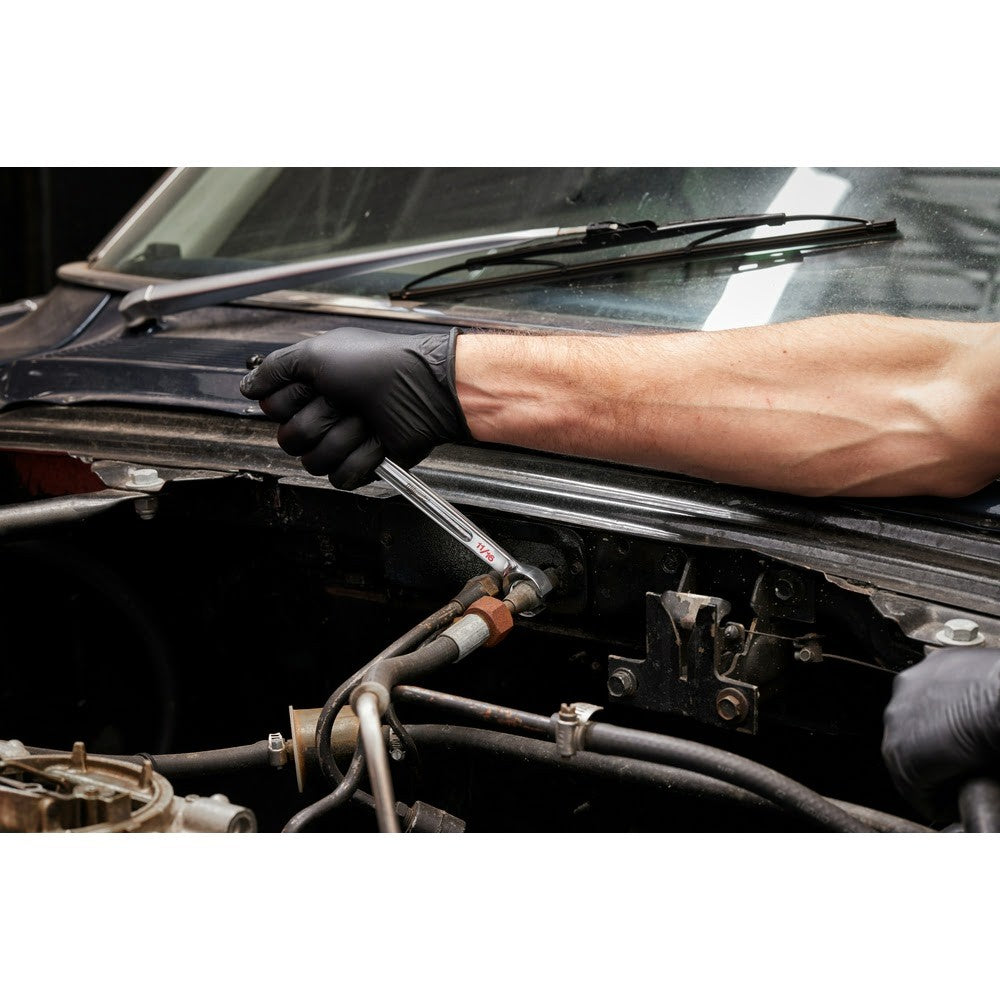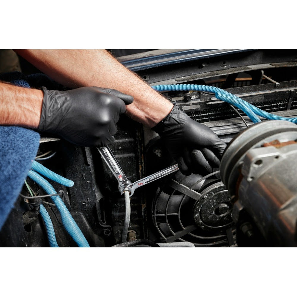 The MILWAUKEE 5 Piece Double End Flare Nut Wrench Set offers the most visible sizes for easy identification with ink-filled size labels for quick distinction between SAE and metric sets. The slim profile open ends provide better access to hard-to-reach line nuts and hex bolt heads. The Comfortable I-Beam Handle Design allows superior user comfort, even while applying high torque. The 5-piece flare nut wrench set comes in a storage tray designed for low-profile, long-term storage to keep your tool chest organized. Milwaukee stands behind its products and offers a Lifetime Guarantee on all Mechanics Hand Tools.