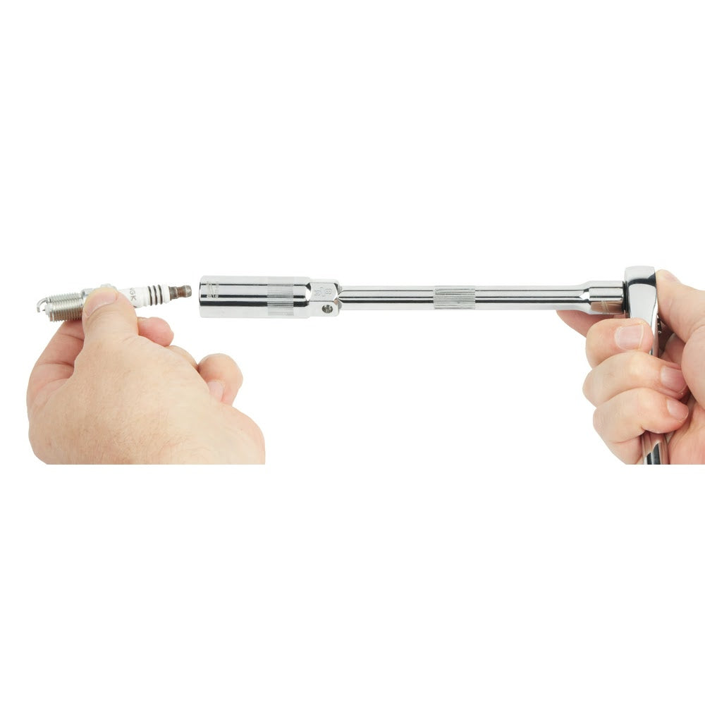 The MILWAUKEE 3/8 Drive 13/16 6-Point Magnetic Spark Plug Socket features an amplified rare earth magnetic retainer that balances a secure fit with smooth removal of the spark plug from the socket. A precision knurling on the outside of the spark plug socket allows for better control when hand tightening or loosening. Both the socket and retainer withstand harsh chemicals commonly found in the garage. Stamped size markings make it easy to identify the size of the socket. The external hex at the base of the socket fits a 13/16” wrench for added control. Milwaukee Spark Plug Sockets are backed with a Lifetime Guarantee.