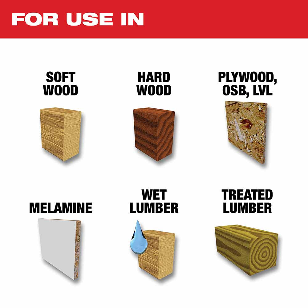 • Milwaukees anti-friction coating keeps the blade cool while cutting and resists corrosion & gumming.