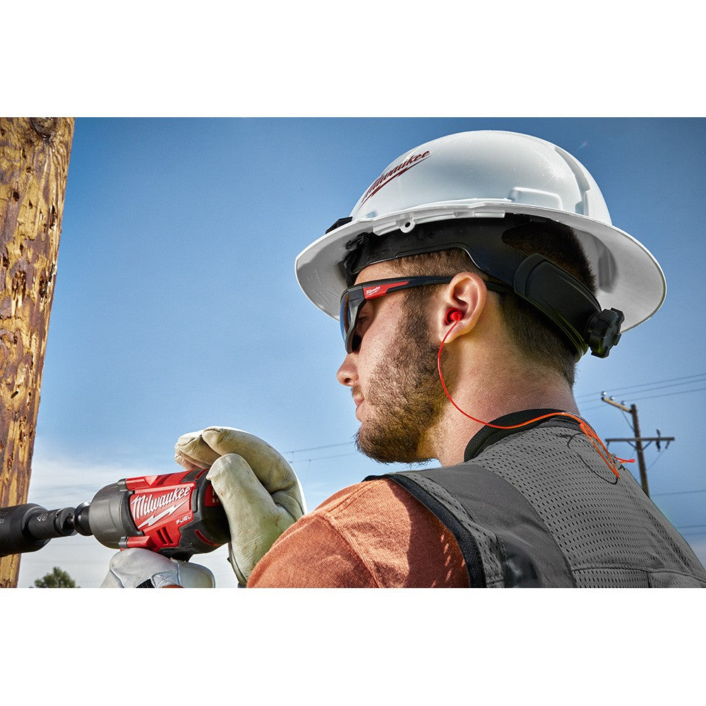 The 3 pack of MILWAUKEE® Reusable Corded Ear Plugs are designed for all day comfort. These ear plugs with cords allow for easy access and can be worn around the neck or hung on a cart while not in use. The corded ear plugs are made with soft comfortable silicon for all day comfort and a quick fit design provides maximum efficiency to get back to work faster and achieve a proper seal. These reusable ear plugs have an NRR of 26 to protect against hazardous noise. These soft ear plugs also include a case for easy storage.