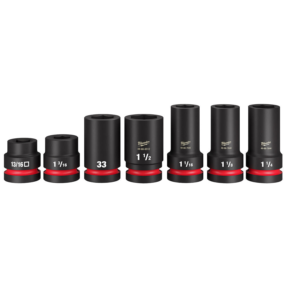 The MILWAUKEE SHOCKWAVE Impact Duty 1 Drive 7PC MM & SAE Wheel Service Socket PACKOUT Set features the boldest, longest-lasting markings. The stamped and ink-filled size markings enable you to select the right socket every time throughout the life of the socket. The 4 and 6-point metric and SAE sockets are engineered with high-strength forged steel for optimized performance in high stress applications, and a non-slip hex geometry prevents fastener rounding. The dual-hole design and ring groove allow for easy socket attachment and removal. The set is organized in a PACKOUT Compact Organizer with a clear top to identify parts at a glance easily. The Compact Organizer is part of the MILWAUKEE PACKOUT Modular Storage System, allowing for storage customization and easy transport of tools and accessories. All MILWAUKEE SHOCKWAVE Impact Duty Sockets are backed by their Lifetime Guarantee and meet ASME industry standards.